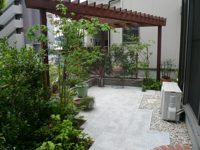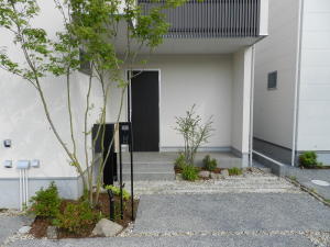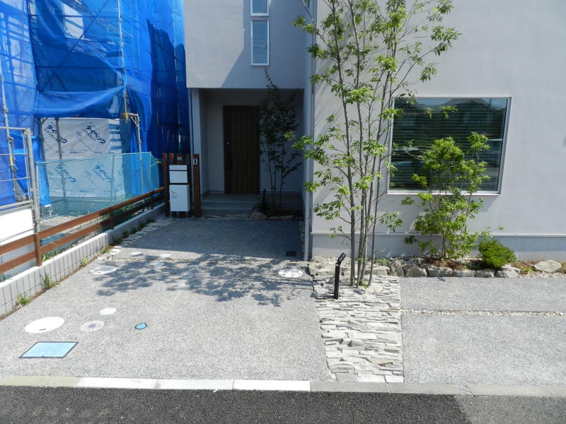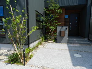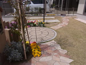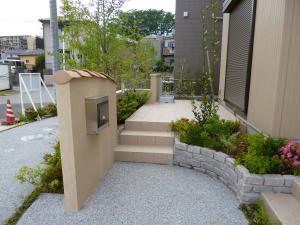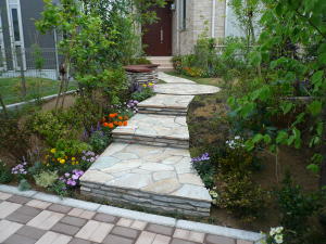 | 植栽スペースの縁取りに自然石小端石を利用 |