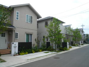 | 広々した芝庭と大きく育てる樹木の街づくり |